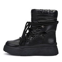 Стильные бежевые дутики с декоративной шнуровкой. Верх комбинирует практичную кожу из спилка и непромокаемый текстиль. Подкладка и стелька утеплены натуральной шерстью для оптимальной терморегуляции на улице и в помещении. Высокая подошва из материала ТЭП отличается легкостью, морозоустойчивостью и хорошим сцеплением с любой поверхностью.