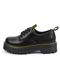 Модельные низкие дерби станут отличным дополнением к коллекции демисезонной обуви. Лаконичность фасона и черный цвет разбавлены лентой с желтыми полосками на язычке и заднике, а также желтой строчкой по верху подошвы. Модель имеет аккуратную шнуровку, утолщенную подошву в соответствии с трендом сезона.