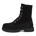 Базовые черные ботинки с высокой шнуровкой. Верх выполнен из натуральной кожи и дополнительно укреплен современным искусственным аналогом для надежной защиты от холода и влаги. Мягкая текстильная подкладка и кожаная стелька обеспечивают комфорт стоп. Утолщенная резиновая подошва с выраженными протекторами отличается прочностью и хорошим сцеплением с любой поверхностью.