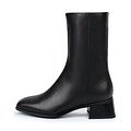 Изящные черные женские полусапоги на каблуке. Подкладка и стелька из мягкого ворсина обеспечивают тепло и комфорт в холодные дни. Гибкая и прочная подошва из резины отвечает за надежное сцепление с поверхностью. Широкий каблук высотой 45 мм гарантирует устойчивость. Модель с удобной застежкой на молнию.