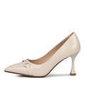 Лаконичные лакированные туфли на фигурном каблуке. Верх выполнен из мягкой лакированной кожи с глянцевой фактурой. Подкладка изготовлена из нежной кожи шевро, стелька — из шевро. Изящный каблук высотой 79 мм визуально делает силуэт легче, а также обеспечивает равномерное распределение нагрузки по стопе.