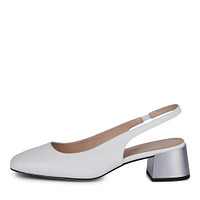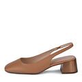 Классические бежевые кожаные туфли-слингбэки. Комфорт стоп обеспечивают кожаная подкладка и стелька из нежной кожи шевро. Пара отлично впишется в образы с брючными костюмами, воздушными платьями и юбками. Широкий каблук высотой 49 мм формирует оптимальную поддержку и гарантирует устойчивость.
