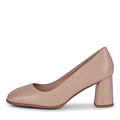 Бежевые кожаные туфли на устойчивом каблуке. Комфорт стоп обеспечивают кожаная подкладка и стелька из нежной кожи шевро. Широкий каблук высотой 70 мм гарантирует оптимальную поддержку. Пара отлично впишется в образы с брючными костюмами, воздушными платьями и юбками.