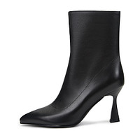 Классические черные ботильоны из велюра. Подкладка и стелька выполнены из мягкого ворсина, который обеспечивает дополнительное утепление стоп. Резиновая подошва отличается прочностью. Тонкий фигурный каблук высотой 85 мм устойчив и грамотно распределяет нагрузку на стопы, а также способен визуально вытянуть силуэт.