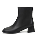 Базовые черные ботильоны с трендовым квадратным мысом. Материал верха - мягкая кожа из спилка. Подкладка и стелька утеплены ворсином. Утолщенная резиновая подошва обеспечивает надежное сцепление с любой поверхностью. Небольшой устойчивый каблук высотой 4,9 см визуально вытягивает силуэт и грамотно распределяет нагрузку на стопы.