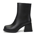 Лаконичные черные ботильоны с трендовым квадратным мысом. Материал верха - мягкая кожа из спилка. Подкладка и стелька из натурального меха согревают стопы даже в сильный мороз. Утолщенная резиновая подошва отличается прочностью и хорошим сцеплением с любой поверхностью. Устойчивый блочный каблук высотой 7,3 см грамотно распределяет нагрузку на ноги.