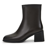 Минималистичные черные ботильоны из мелкозернистой натуральной кожи. Подкладка и стелька из мягкого ворсина обеспечивают тепло и уют в прохладную погоду. Утолщенная резиновая подошва отличается прочностью и хорошим сцеплением с любой поверхностью. Устойчивый блочный каблук высотой 6 см грамотно распределяет нагрузку на стопы.