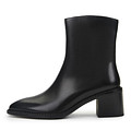 Классические черные ботильоны на широком каблуке. Материал верха - нежная кожа шевро. Внутренняя часть модели утеплена мягким ворсином. Подошва из материала ТЭП отличается гибкостью и прочностью, обеспечивает хорошее сцепление с поверхностью. Устойчивый каблук высотой 65 мм грамотно распределяет нагрузку на стопы.