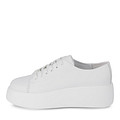 Минималистичные белые кожаные кеды. Подкладка и стелька изготовлены из мягкой натуральной кожи. Высокая подошва из полиуретана поддерживает стопы в оптимальном положении и обеспечивает комфорт при ходьбе. Кеды идеально дополнят образы с брюками, джинсами и платьями.