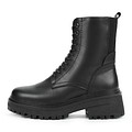 Базовые кожаные ботинки черного цвета. Утепленная модель с подкладкой и стелькой из натуральной шерсти. Высокая шнуровка надежно фиксирует обувь на ноге, а застежка на молнию ускоряет процесс надевания пары. Рифленая подошва из резины гарантирует устойчивость на любых покрытиях.