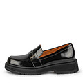 Лоферы женские натуральная кожа лаковые летние и демисезонные выполнены на платформе 2,5 см и среднем каблуке 4,5 см. Лакированные весенние и осенние туфли на высокой подошве пригодятся на лето и как сменка для работы на зиму. Кожаные натуральные лоферы на тракторной подошве весна осень для взрослых женщин и молодых подростков девушек удобны для повседневной носки и свидания, а также для танцев на вечеринке. Классические закрытые лоферы с пяткой для женщины могут подойти на 1 сентября для подростка девочки. Модель на толстой подошве и маленьком каблуке удобна как вторая или сменная обувь для офиса и в школу. Офисные или школьные короткие ботинки на широком каблуке выглядят модно. Эффектные женские и подростковые лоферы на невысоком каблуке классика и кэжуал идут под платье, юбку, брюки. Пара может пригодиться на выпускной для мамы или бабушки. Красивые вечерние, танцевальные или повседневные рабочие полуботинки на небольшом каблуке обеспечивают комфорт. Модные женские и молодежные лодочки могут подойти как праздничные или свадебные туфли для подружек невесты на свадьбу или девичник. Эта удобная брендовая обувь на устойчивом каблуке украшена ремешком и деталями в стиле мокасины. Черные лоферы на черной подошве дополнены качественной фурнитурой. Изготовлены стильные туфли из натуральной кожи КРС черного цвета с лаковым покрытием. Подкладка и стелька выполнены из свиной натуральной кожи светлого коричневого цвета, с высокой гигроскопичностью и вентиляцией. Подошва из резины прочная и износостойкая, с отличными противоскользящими свойствами. Каблук моноблок надежный, литой с подошвой. Высота голенища 5,5 см, с 37 размера прибавляется 2 мм к каждому размеру. Комфортны лоферы на узкую ногу и средней обычной полноты. Температурный режим минимум плюс 5. Вес пары около 740 гр.