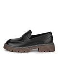 Базовые черные кожаные лоферы на графичной подошве. Кожаная подкладка и стелька  обеспечивают комфортную посадку и хороший воздухообмен. Подошва изготовлена из материала ТЭП, который отличается прочностью. Лоферы хорошо дополнят образы с джинсами, брюками, костюмами.