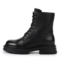Базовые бежевые ботинки с верхом из гладкой кожи шевро. Модель с мягкой подкладкой и стелькой из ворсина обеспечивает тепло и комфорт стоп. Пара со шнуровкой и удобной застежкой на молнию. Плотная подошва из гибкой и прочной резины гарантирует долгий срок службы обуви. Эти ботинки — отличный выбор для образов в стиле casual.