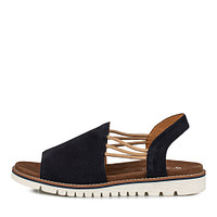 Базовые летние сандалии зеленого цвета. Верх изготовлен из мягкого велюра. За комфорт стоп даже при длительном использовании обуви отвечают подкладка и стелька, изготовленные из натуральной кожи. Модель без застежки дополнена эластичными вставками, позволяющими регулировать посадку. Изогнутая подошва из полиуретана обеспечивает оптимальную поддержку стоп.