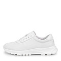 Базовые кожаные полуботинки белого цвета. Модель с прочной шнуровкой на высокой спортивной подошве. Натуральная кожаная подкладка и стелька обеспечивают комфорт стоп при каждом шаге. Легкая и прочная полиуретановая подошва гарантирует надежное сцепление с поверхностью. Полуботинки с перфорацией отлично дополнят образы в спортивном и casual-стиле.