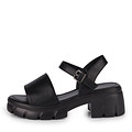 Черные летние босоножки на массивной подошве в стиле 90-х. Широкие ремешки изготовлены из кожи из спилка и дополнены подкладкой из натуральной кожи. Стелька выполнена из мягкой искусственной кожей. Легкая и прочная полиуретановая подошва обеспечивает надежную поддержку.