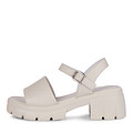 Бежевые летние босоножки на массивной подошве в стиле 90-х. Широкие ремешки изготовлены из кожи из спилка и дополнены подкладкой из натуральной кожи. Стелька выполнена из мягкой искусственной кожей. Легкая и прочная полиуретановая подошва обеспечивает надежную поддержку. Кожаные босоножки отлично впишутся в образы с платьями, шортами и укорочеными джинсами.