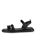 Кожаные черные сандалии с изящными ремешками. Утолщенная подошва из полиуретана поддерживает стопы при ходьбе в оптимальном положении. Пара гармонично впишется в образы с платьями, брюками и шортами.