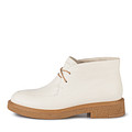 Низкие кожаные ботинки бежевого цвета. Подкладка и стелька изготовлены из мягкого ворсина. Плотная подошва из резины обеспечивает оптимальную поддержку стоп и хорошее сцепление с поверхностью. Модель с короткой шнуровкой, надежно фиксирующей обувь на ноге.