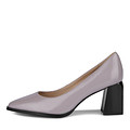 Элегантные женские туфли на устойчивом среднем каблуке из лакированной натуральной кожи с острым носком. Классическая модель с кожаной стелькой, закрытым мысом и пяткой. Удобная для работы, школы и повседневной носки. Прочная подошва, мягкий шаг, благородный фиолетовый цвет, износостойкие материалы.
