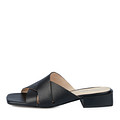 Сабо – одна из любимых моделей многих девушек и женщин. Все потому, что эта обувь может быть одинаково комфортной для жарких летних дней и очень привлекательная, подчас ее выбирают вместо босоножек. Пара полностью выполнена из натуральной кожи немаркого черного цвета, имеет низкий каблук 3 см. Союзка – переплетенные широкие ремешки.