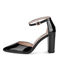 Эффектные женские черные лакированные туфли. Кожаная подкладка и стелька из шевро обеспечивают идеальный воздухообмен и комфортную посадку. Широкий каблук высотой 100 мм поддерживает стопы при ходьбе. Туфли с изящным ремешком на щиколотке хорошо дополнят образы с джинсами, брюками, летящими платьями.