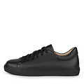 Черные кожаные кеды понравятся тем, кто любит стиль унисекс. Лаконичный дизайн делает их универсальной повседневной обувью, сочетающейся с одеждой для работы и отдыха. Шнуровка смотрится аккуратно благодаря дополнительной кожаной петле. Толстая резиновая подошва (33 мм) обеспечивает правильное положение стопы, поэтому нога в такой обуви не устает.