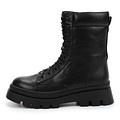 Трендовые массивные черные ботинки с высокой шнуровкой. Ботинки из гладкой натуральной кожи утеплены натуральным мехом. Подошва из материала ТЭП гибкая, прочная и термоустойчивая.