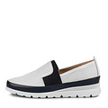 Белые женские слипоны повышенного комфорта с овальной носочной частью. Верх выполнен из мягкой натуральной кожи с контрастной эластичной вставкой на союзке. Слипоны на платформе дополнены перфорацией и мягкой перфорированной стелькой. Облегченная подошва летних туфель выполнена в виде танкетки с линейным протектором.
