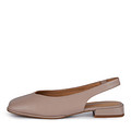 Трендовые бежевые туфли с открытой пяткой и квадратным мысом. Верх модели выполнен из кожи шевро, подкладка — из натуральной кожи. Комфорт стопы также обеспечивает мягкая перфорированная стелька из шевро. Женские слингбэки дополнены аккуратным овальным вырезом и изящным ремешком, который хорошо фиксирует обувь на ноге.