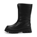Удобные черные полусапоги с широким голенищем. Верх выполнен из гладкой натуральной кожи, пара утеплена натуральной шерстью. Массивная подошва из материала ТЭП гибкая, прочная и легкая. Модель с практичной застежкой на молнию.