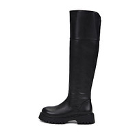 Акцентные черные ботфорты с широким голенищем из мягкого ворсистого спилка. Пара утеплена натуральным мехом. Модель с удобной застежкой на молнию. Рифленая резиновая подошва подстраивается под движения стопы и обеспечивает надежное сцепление с поверхностью в любую погоду.