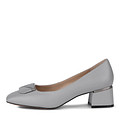Графичные серые туфли из матовой кожи шевро. Комфорт стоп и идеальную посадку обуви обеспечивают подкладка и стелька, выполненные из нежной кожи шевро. Фигурный каблук высотой 49 мм формирует оптимальную поддержку. Прочная подошва из тунита, лаконичный декор в носочной части туфель.