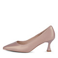 Базовые бежевые туфли из матовой кожи шевро. Комфорт стоп и идеальную посадку обуви обеспечивают кожаная подкладка и стелька, выполненная из нежной кожи шевро. Фигурный каблук высотой 66 мм формирует оптимальную поддержку. Прочная подошва из тунита.