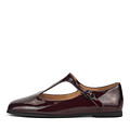 Балетки из лакированной кожи бордового цвета. Модель с круглым мысом на рельефной подошве. Застежка на узкий ремешок с акцентной пряжкой.