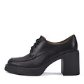 Эффектные черные кожаные полуботинки на широком каблуке. Хороший воздухообмен и идеальную посадку гарантируют подкладка и стелька, выполненные из мягкой натуральной кожи. Высокая подошва из материала ТЭП и широкий устойчивый каблук формируют оптимальную поддержку стоп. Пара отлично дополнит образы с брюками, джинсами, костюмами.