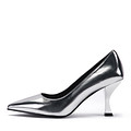 Акцентные серебряные туфли на фигурном каблуке. Верх выполнен из гладкой натуральной кожи. За комфорт стоп отвечают мягкая кожаная подкладка и стелька. Высота каблука — 83 мм.