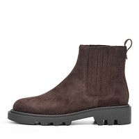Минималистичные бежевые велюровые челси. Пара утеплена мягким ворсином, надежно защищающим стопы от холода. Высокая подошва из материала ТЭП обеспечивает устойчивость на любых покрытиях. Эластичные вставки гарантируют идеальную посадку.