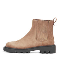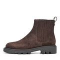 Минималистичные коричневые велюровые челси. Пара утеплена мягким ворсином, надежно защищающим стопы от холода. Высокая подошва из материала ТЭП обеспечивает устойчивость на любых покрытиях. Эластичные вставки гарантируют идеальную посадку.