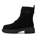 Стильные черные ботинки с декоративным ремешком. Материал верха - бархатистый спилок. Подкладка и стелька утеплены натуральной шерстью. Высокая рифленая подошва из ТЭП отличается прочностью и хорошим сцеплением с поверхностью