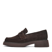 Трендовые коричневые лоферы из бархатистого спилока. Стильное решение для акцента в повседневном образе. Резиновая подошва отличается прочностью. Широкий каблук высотой 48 мм равномерно распределяет нагрузку на стопу.