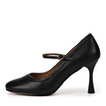 Чёрные туфли "Мэри Джейн" с оригинальным дизайном. Подкладка и стелька из шевро формируют оптимальный воздухообмен. Тонкий каблук высотой 88 мм гарантирует равномерное распределение нагрузки по стопе.