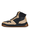 Черно-бежевые высокие кеды идеально дополнят гардероб активной городской женщины. Верх выполнен из практичной искусственной кожи нового поколения. Пара утеплена мягким ворсином. Высокая подошва из материала ТЭП отличается легкостью, устойчивостью к истиранием и хорошим сцеплением с поверхностью.
