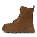 Женские ботинки выполнены из мягкого натурального нубука оттенка коричневой охры. Такая пара отлично впишется в любой повседневный образ как с джинсами и бомбером, так и в сочетании с платьем и пальто. Подкладка из бархатистого ворсина придает ощущение комфорта и тепла. Широкая, гибкая и облегченная подошва защитит от погодных внешних воздействий. Эффектности паре придает патинированная отделка задника и носочной части.