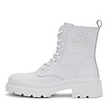 Стильные белые ботинки с высокой шнуровкой. Материал верха - практичная натуральная кожа. Подкладка и стелька утеплены мягким ворсином. Высокая резиновая подошва с выраженными протекторами отличается прочностью и устойчивостью на любых покрытиях.