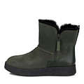 Акцентные темно-зеленые угги из мягкого спилка и натуральной кожи. Шерстяная подкладка и стелька гарантируют комфорт стоп в холодную погоду. Утолщенная подошва из ТЭП морозостойкая, прочная и гибкая, она обеспечивает отличное сцепление с поверхностью. Пара с удобной застежкой на молнию и практичной петлей на голенище, ускоряющей процесс фиксации обуви.