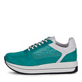 Зеленые кроссовки из сетчатого нейлона и велюра. Стелька, выполненная из мягкой натуральной кожи, гарантирует оптимальный воздухообмен и идеальную посадку. Высокая резиновая подошва поддерживает стопы в естественном положении. Пара с прочной шнуровкой и утолщенным воротом. Модель хорошо подойдет для образов с джинсами, брюками, шортами.