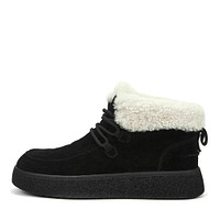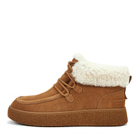 Удобные ботинки цвета хаки декорированы молочным натуральным мехом. Верх выполнен из бархатистого спилка, что придает паре стильный вид. Подкладка и стелька из шерсти обеспечивают комфортную терморегуляцию, а прочная резиновая подошва гарантирует надежное сцепление с любой поверхностью.