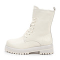 Белые женские ботинки станут ярким акцентом зимнего образа, придадут ему легкость. Пара выполнена из кожи, утеплена шерстью. Комфортная высокая подошва и устойчивый квадратный каблук предотвращают скольжение, защищают ноги от холода. Обувь на шнуровке. Верхняя часть голенища – с отворотом, который придает модели уютный вид.