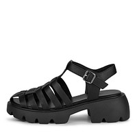 Бежевые кожаные сандалии в стиле 90-х. Подкладка и стелька изготовлены из мягкой искусственной кожи. Трендовая высокая подошва из полиуретана устойчива к истиранию, а также отличается легкостью. Застежка на аккуратную пряжку серебряного цвета.